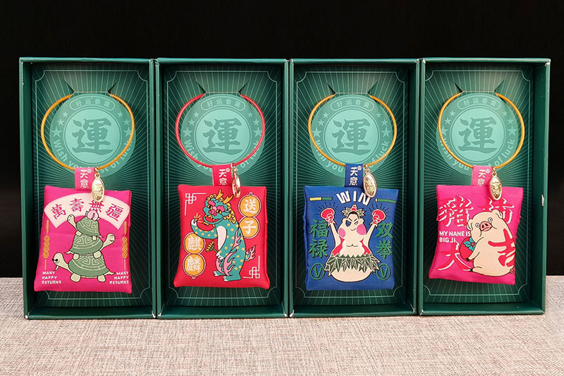 天意香囊采用原創國潮圖案,極富創意和趣味性,利用諧音梗配上搞笑圖片,比如“才華橫億”“福祿雙拳”等等符合年輕人的審美。