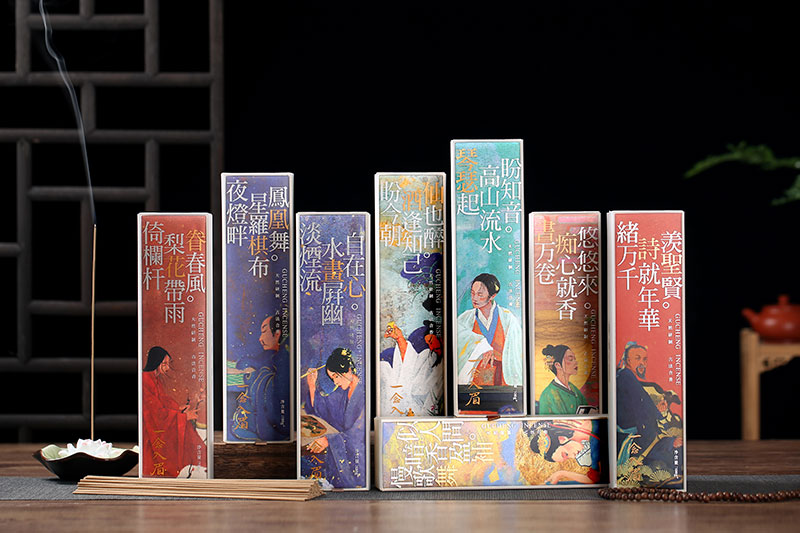 一念入眉系列傳承國家級非物質文化遺產清苑傳統制香技藝,借鑒制香古方,融合琴棋書畫詩酒花舞等中國雅文化,精選沉香、檀香、降真、郁金、乳香、龍腦等多種天然香材,經十幾道工序精制成線香。